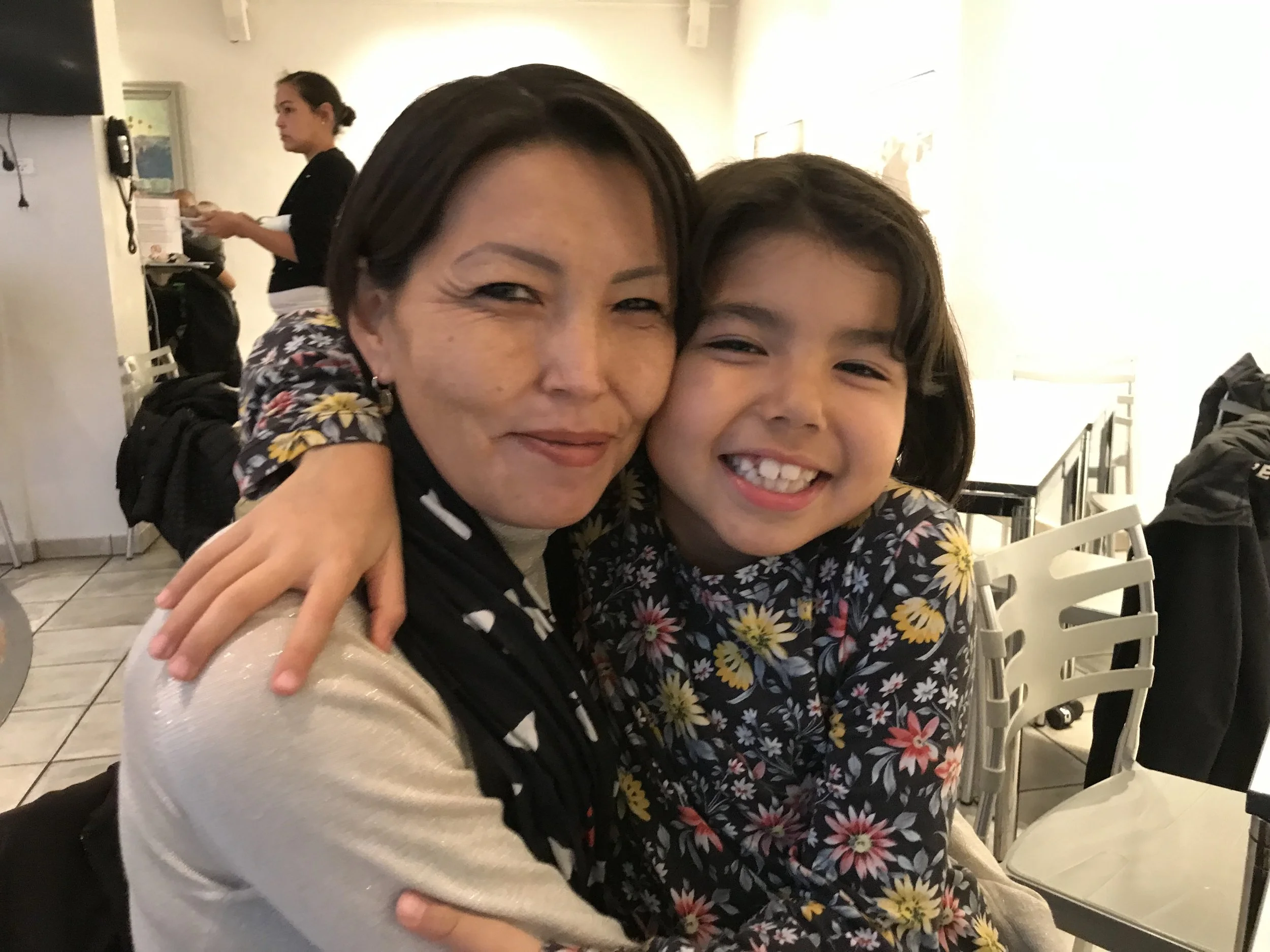 Paornanguak kommer til alle familiecaféer. ”Jeg ses ikke så tit med andre grønlændere, så jeg elsker at komme her og være sammen med de andre familier”. Også datteren Navarana elsker at mødes og lege med de andre grønlandske børn ”Jeg elsker den grønlandske stemning”, siger Navarana.